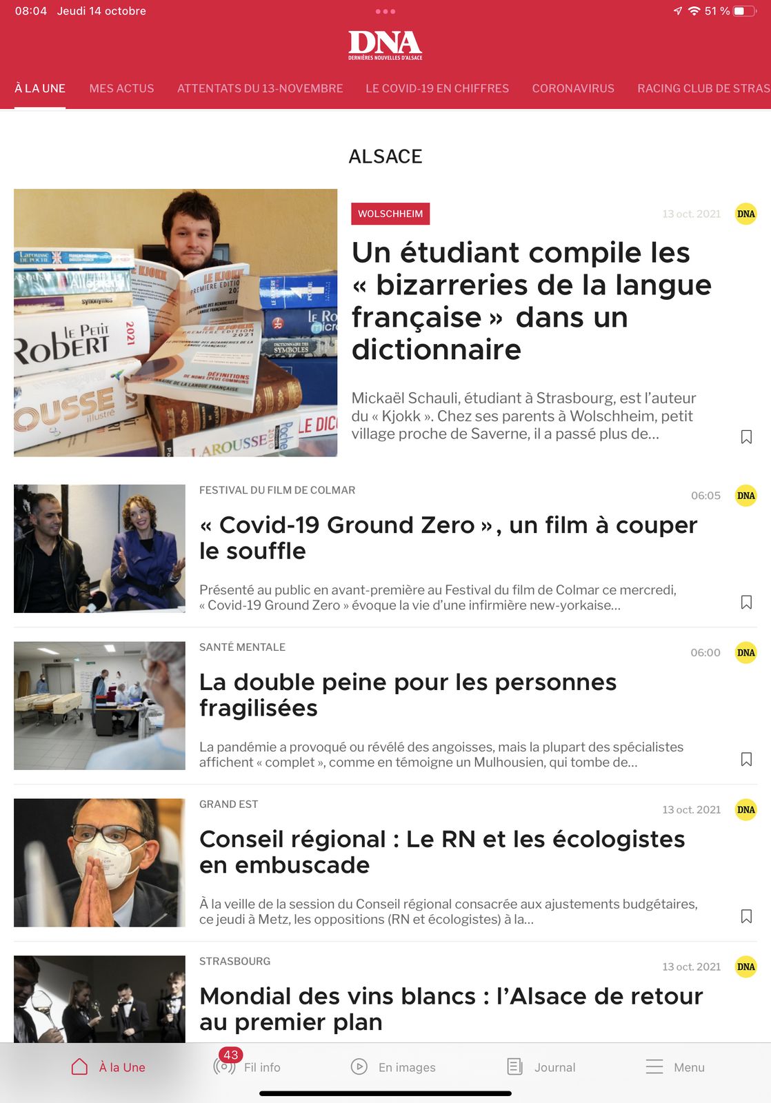 Les images sont cliquables pour accéder aux articles.